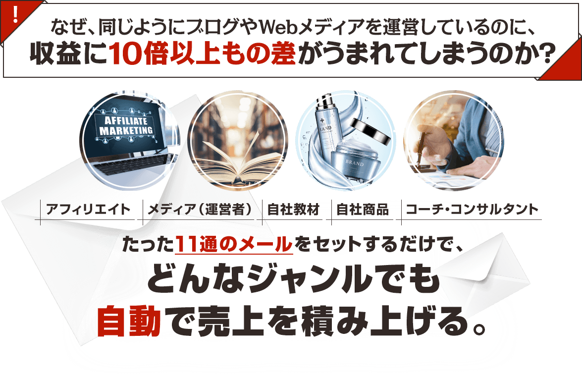 この「11step」は、Webビジネスで収益を上げたいと願うすべての人に向けて、「たった11通のメールをセットするだけで、どんなジャンルでも自動で売上を積み上げる」ための具体的な方法論を提供します。